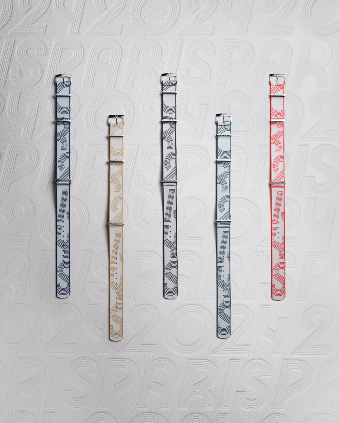 The dial sports the typical raised wave pattern, adding depth to the Superluminova-coated watch face. In addition to the signature dots, markers, and the skeletonized hands, there are some nice new details to discover. For one, the central seconds hand bears the Paris 2024 logo. Another feature that nods to the event is the date indication positioned at 6 o’clock. Its numbers have been inscribed with the Paris 2024 designated font.